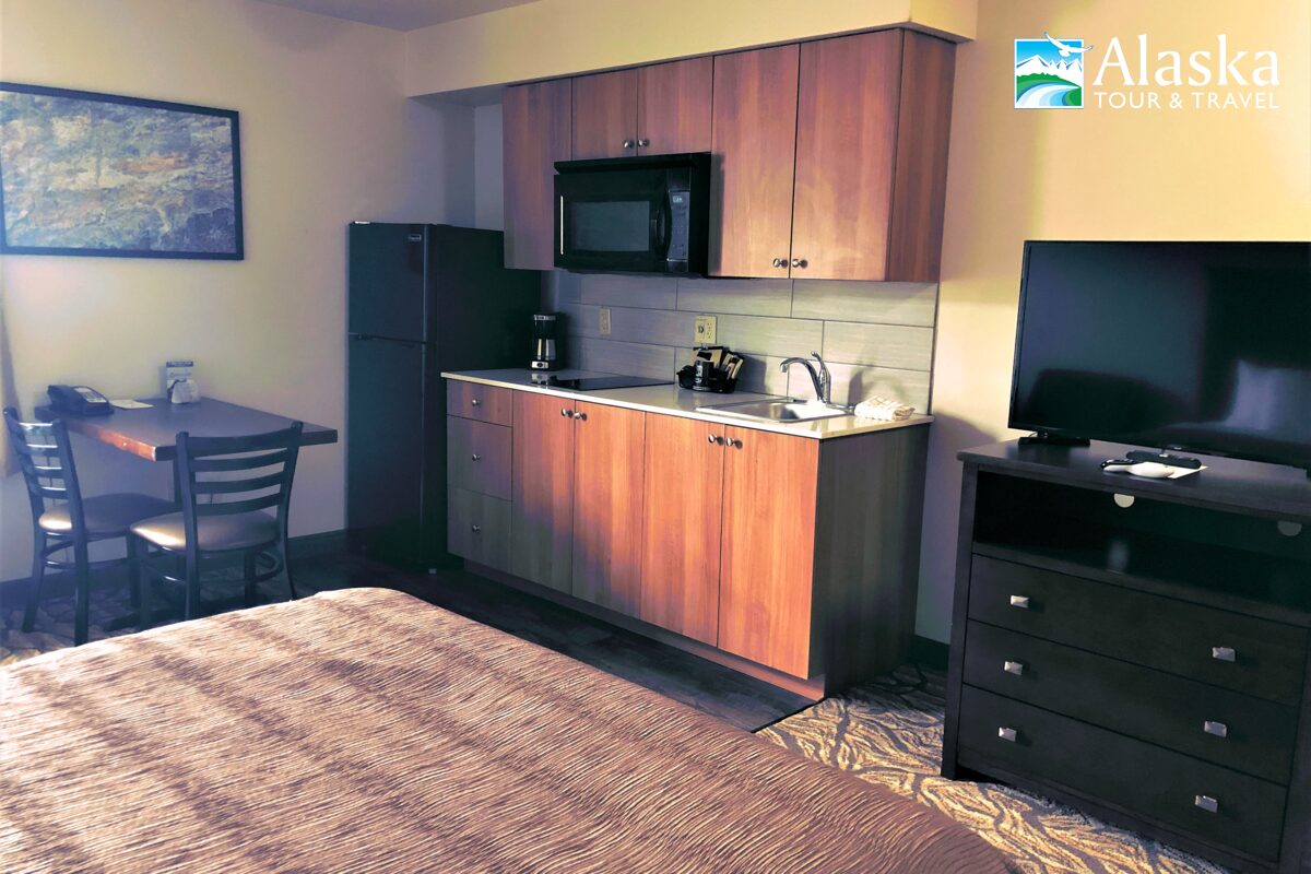 The Aspen Suites Hotel Anchorage is located downtown within walking distance of restaurants and shops. The train depot is five minutes away by car, and the airport is a short 10-minute drive.