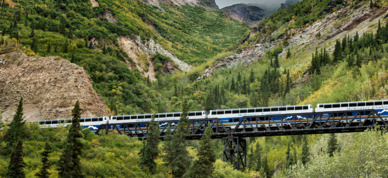 - Wilderness Express private dome train between Anchorage, Talkeetna, Denali, and Fairbanks