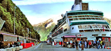 Except for Haines, Skagway, and the tiny town of Hyder, there are no roads into Southeast Alaska. Most visitors travel through the region by cruise ship. Juneau is the hub for major air travel, with Alaska Airlines flights connecting to Anchorage and Seattle. Most other Southeast communities are reachable by floatplane air taxi. The area is also served extensively by the Alaska State Marine Highway.
